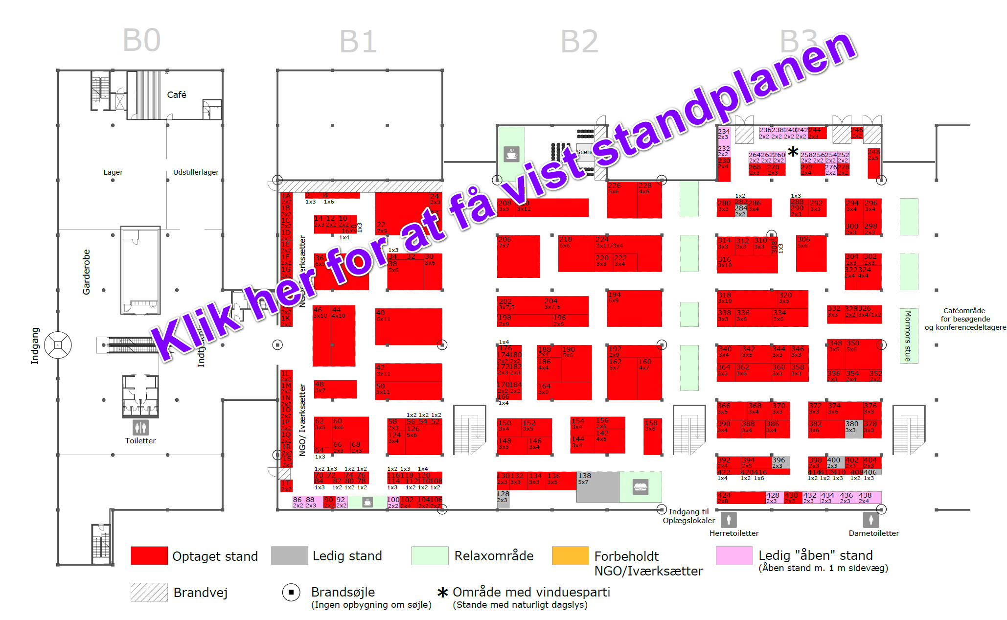 Vi arbejder på at placere stande over 60 m2 inden åbning af almindelig salg af stande. Her er vores foreløbige standplan.